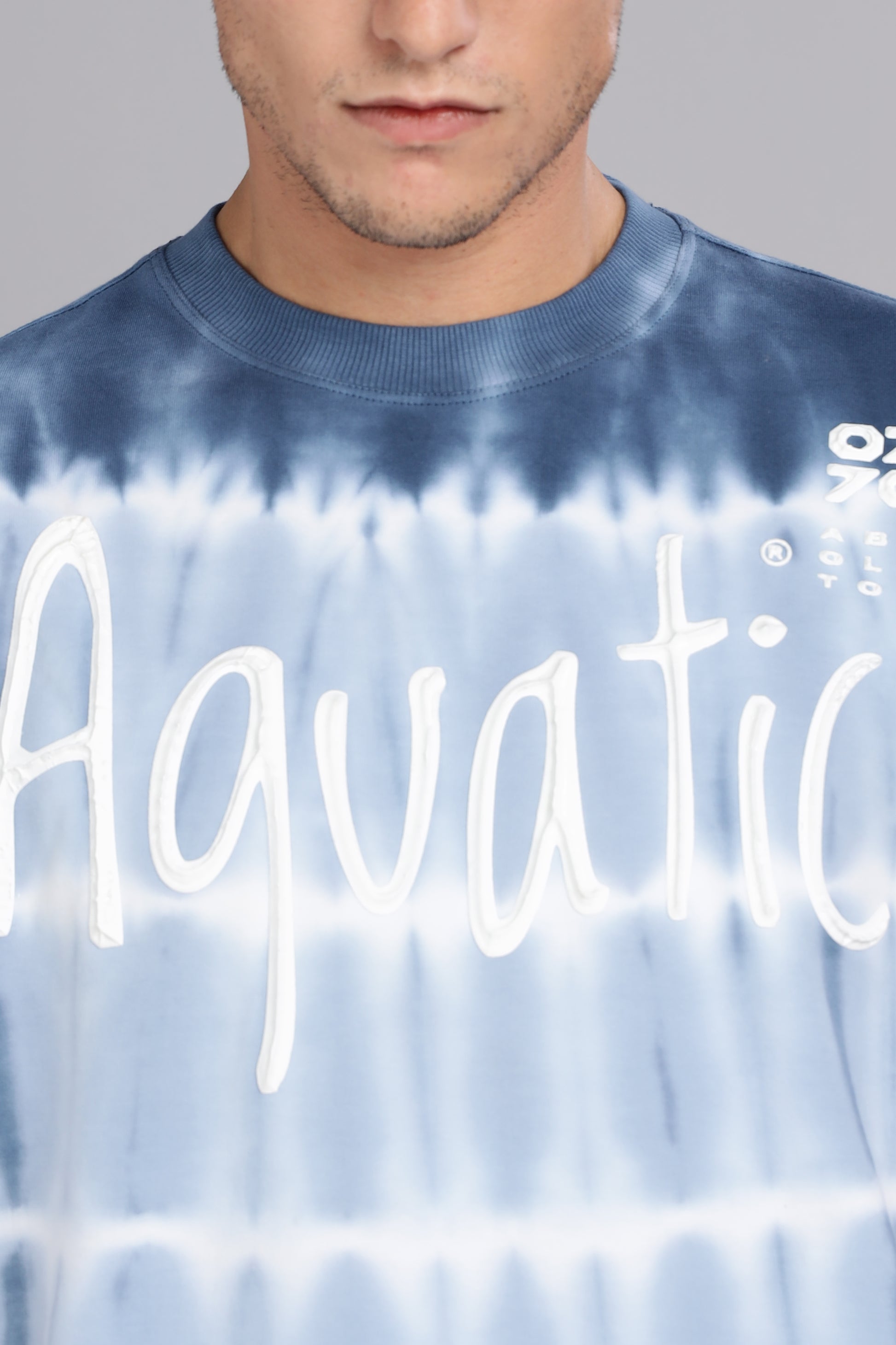 Aquatic | Embossed Tie-Dye Round Neck Relaxed Fit T-Shirt